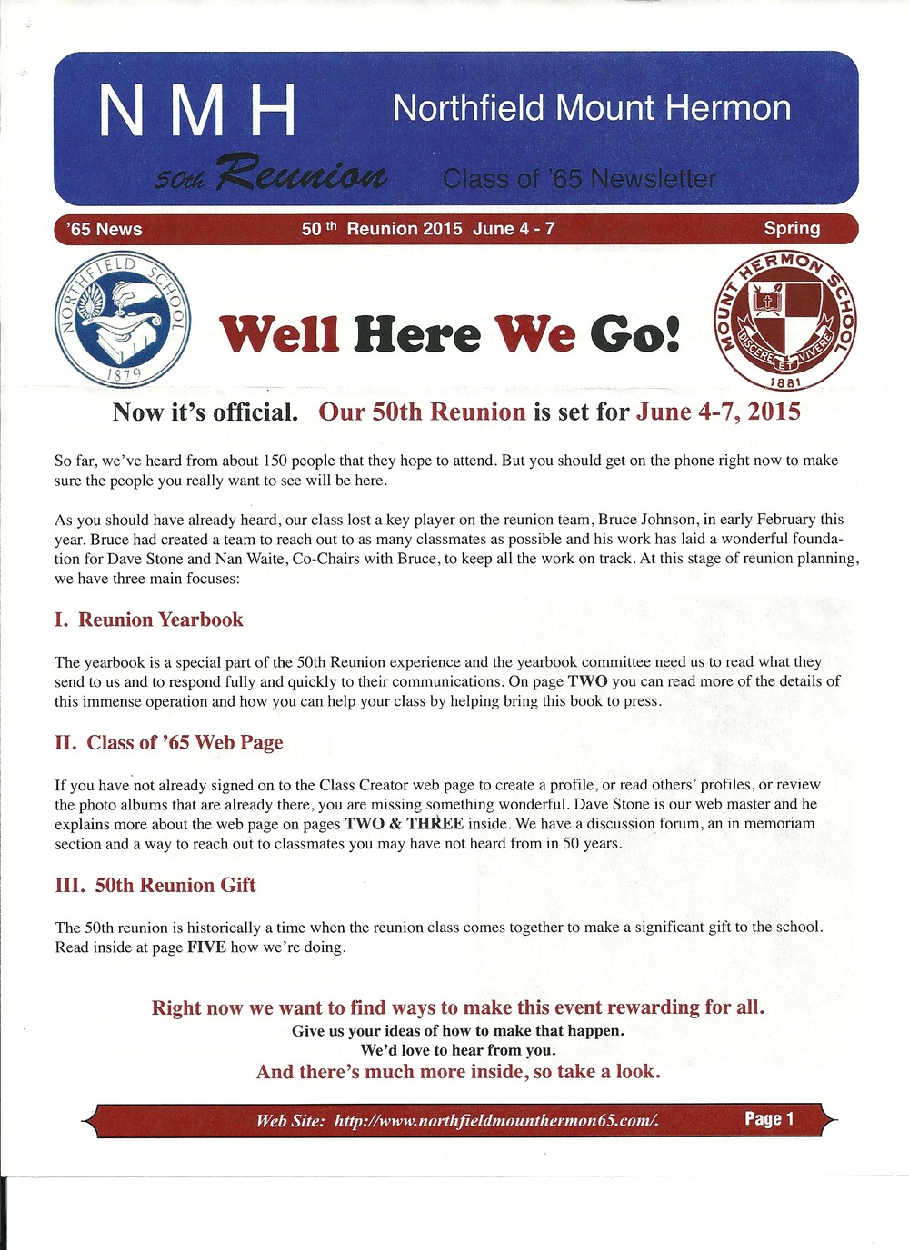 50th Reunion Newsletters